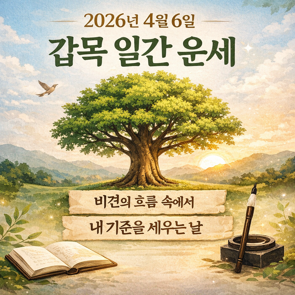 오늘은 2026년 4월 6일 운세. 갑목(甲木) 일간을 기준으로 읽어보려 한다.